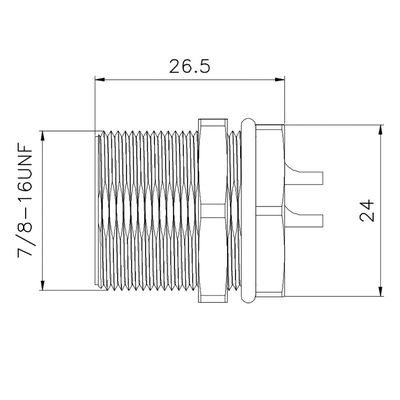 7/8'' Solder Waterproof Male Rear Panel Mount Connector 5pins For Signal