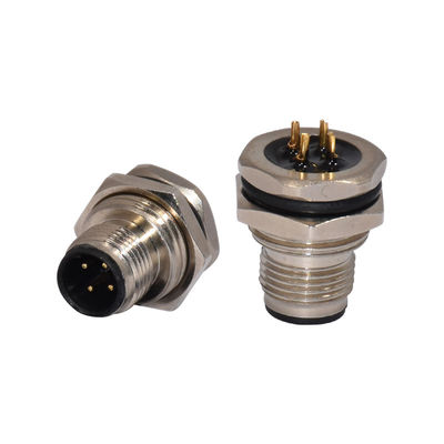 M12 Solder B Code 4pin Male Front Panel Mount Industrial Connector Ip67 For Automotive